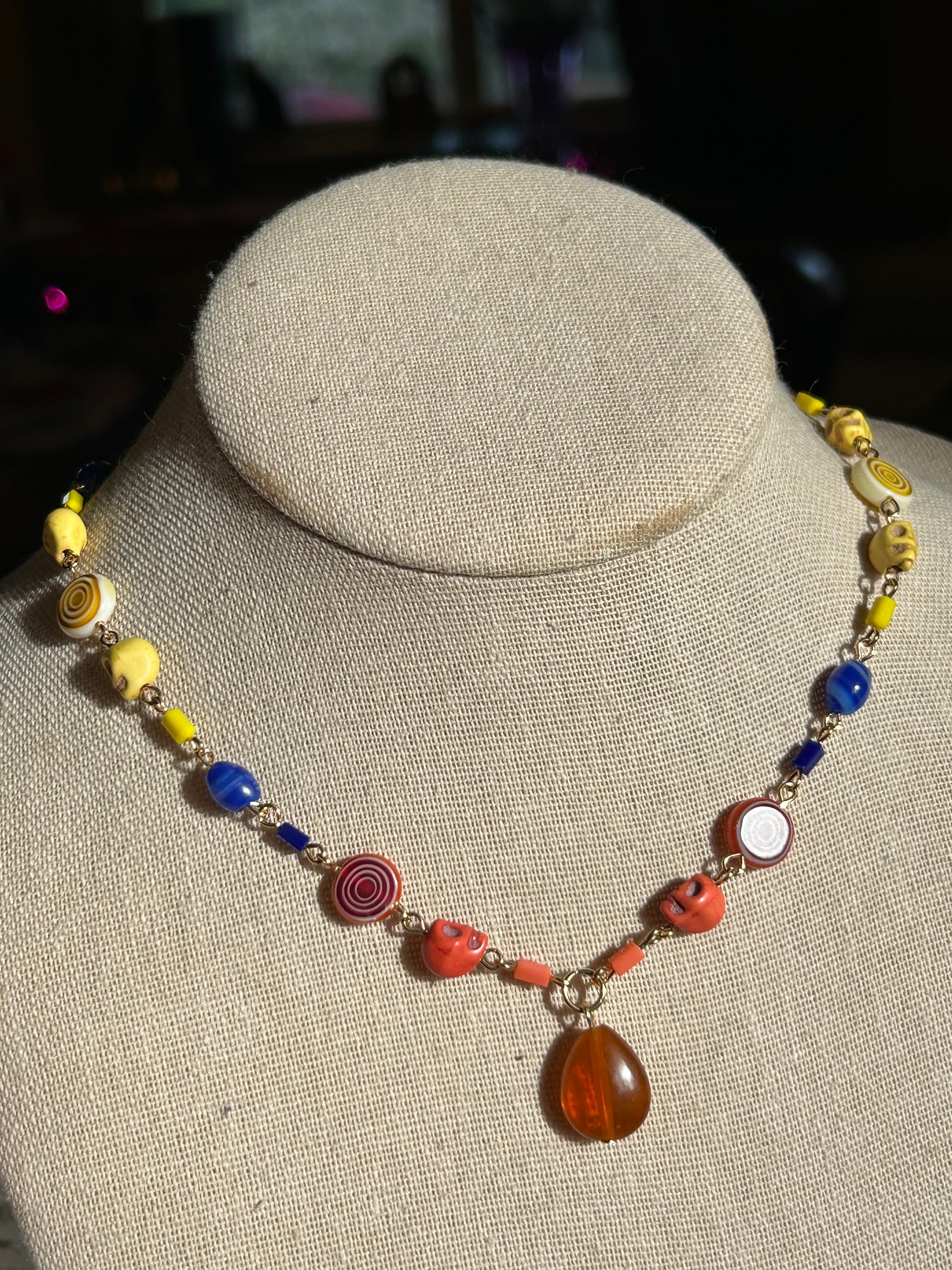 This necklace is adjustable, measuring at 19 - 21” in length.