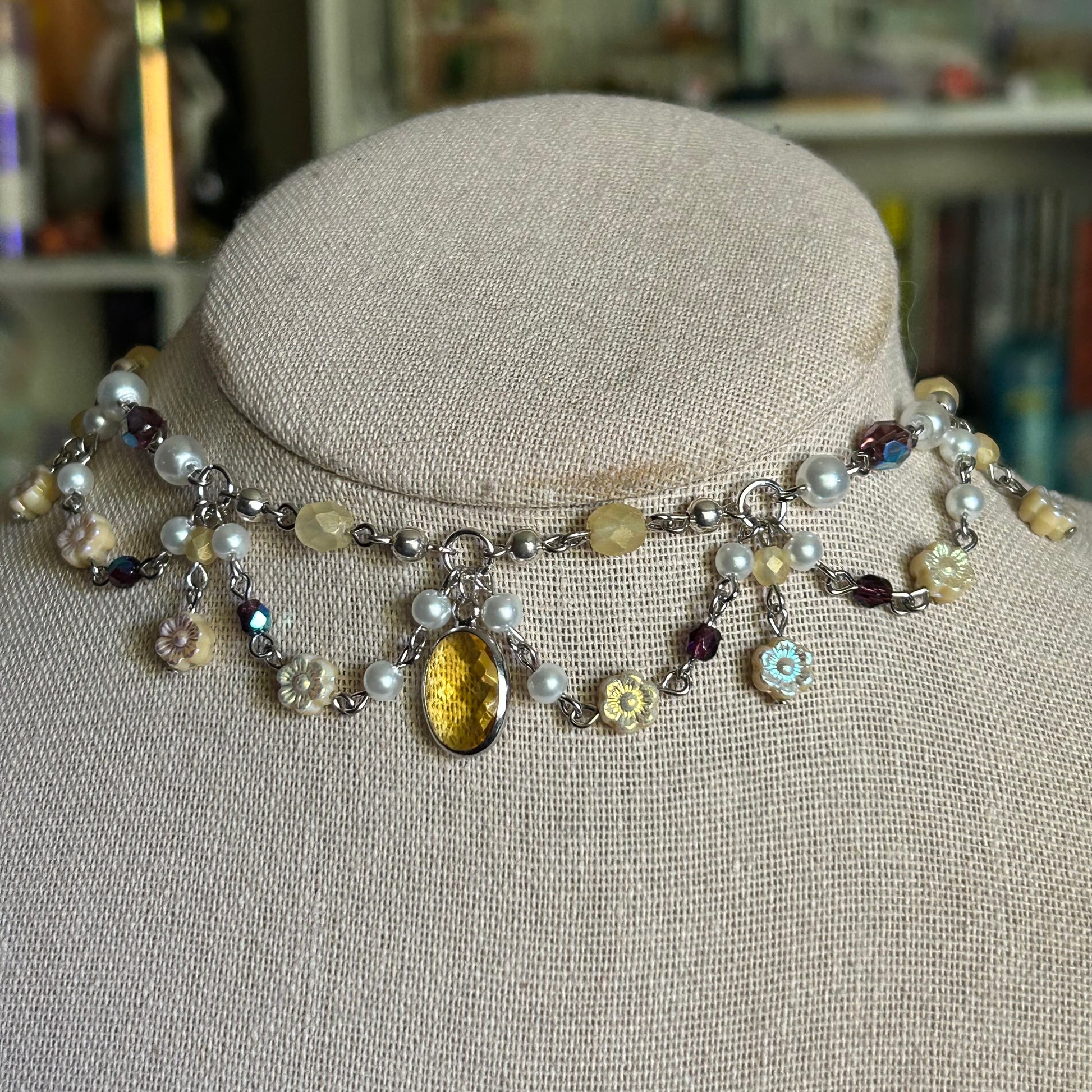 This necklace is adjustable, measuring at 17.5 - 20” in length.